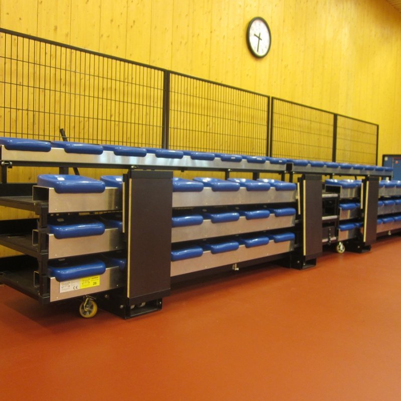 Feste, teleskopische (oder aussiehbare), mobile Tribünen für Theater, Kultur- und Mehrzweckhallen, Sporthallen und Sportarenen, Auditorien für Unternehmen und Bildungseinrichtungen.